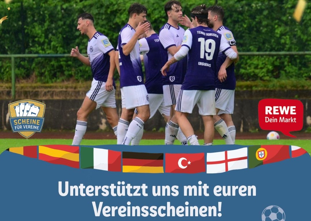 Die Aktion ,,Scheine für Vereine“ läuft noch bis zum 30.06.2024. Kunden und Kundinnen erhalten beim Einkauf in teilnehmenden REWE und Nahkauf-Märkten, sowie bei Bestellungen über den REWE-Onlineshop pro 15€ Einkaufswert einen Vereinsschein gratis, der dem jeweiligen Sportverein in der REWE-App im Bereich „Scheine für Vereine“, oder über „rewe.de/scheinefürvereine“ zugeordnet werden kann. Gewinnen kann unser Verein dabei verschiedenste Sachen, welche gerade benötigt werden. Also sammelt gerne nochmal fleißig Vereinsscheine, um das Maximum für unsere Borussia herauszuholen!