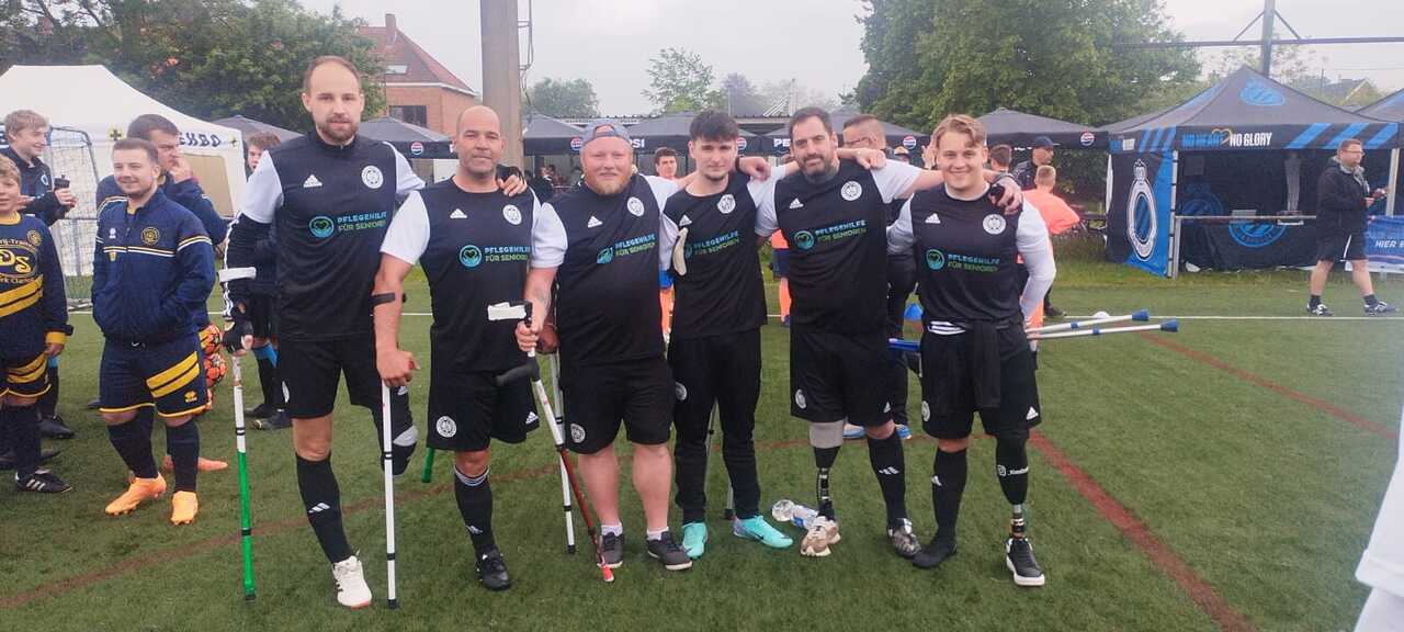 Am vergangenen Wochenende trat unsere Amputierten-Mannschaft zu einem Turnier in der belgischen Stadt Brügge an. Anwesende Mannschaften waren zum einen der Gastgeber Club Brügge, aber auch große Namen wie Royal Antwerpen, oder auch der Hamburger SV waren vertreten. In der Gruppenphase dauerte jede Partie noch 20 Minuten. Der Auftakt gegen die Gastgeber sollte unseren Jungs auch gelingen. Mit einem souveränen 2:0 Erfolg und im Anschluss einem 3:0 Sieg gegen Antwerpen qualifizierte man sich vorzeitig für das Finale. Dort ging es gegen den HSV, welche sich ebenfalls wie unsere Mannschaft schon vorzeitig für das Finale qualifizierten. Im Finale ging die Partie nun 40 Minuten. Nach einem guten Beginn unserer Jungs und der 1:0 Führung, unterlag unsere Mannschaft dem HSV jedoch leider mit 1:3.