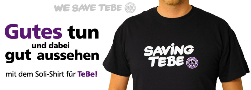 Der TeBe-Onlinefanshop hat mittlerweile wieder die beliebten „We save TeBe“-Shirts in allen Größen im Angebot. In Kürze werden auch Girlieshirts verfügbar sein, um der Nachfrage unserer AnhängerInnen gerecht werden zu können.