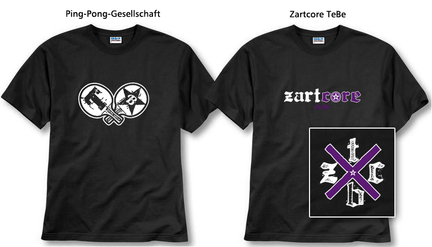 Beim Spiel gegen St. Pauli am letzten Wochenende wurden sie erstmals der Öffentlichkeit präsentiert und waren ein voller Erfolg. Pünktlich zu Ostern sind sie nun auch im Fanshop erhältlich: Die neuen, von „We save TeBe“ entworfenen Fan-Shirts „Ping-Pong-Gesellschaft“ (14,95€) und „Zartcore“ (beidseitig bedruckt, 17,95€).
