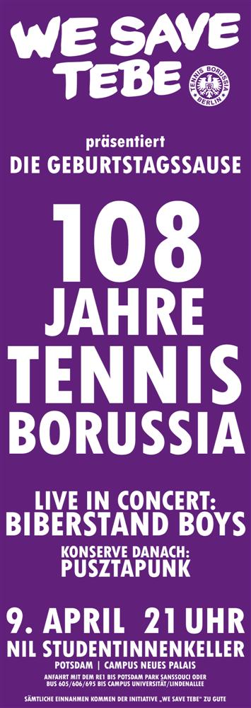 Um allen Borussinnen und Borussen dafür einen würdigen Rahmen zu bieten, findet am heutigen Abend eine große Geburtstagssause, inklusive einem Liveauftritt der Biberstand Boys, im Nil StudentInnenkeller statt. Diesen finden Sie im „Campus Neues Palais“ in Potsdam, gut zu erreichen über die Regionalbahn-Station „Park Sanssouci“. Eine gemeinsame Anreise der TeBe-Fans wird angeboten, z.B. um 19:36 Uhr in Berlin Friedrichstr ab Gleis 3 oder um 19:47 Uhr ab Bahnhof Zoo an Gleis 4.