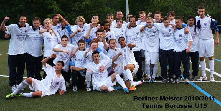 Unter den Augen des Vorstandsvorsitzenden Andreas Voigt, des Geschäftsstellenleiters Olaf Sievers und des ehemaligen Vorsitzenden Bernd Sievers errang die U15 zwei Spieltage vor dem Saisonende durch einen 4:0-Sieg gegen den Ortsnachbarn Brandenburg 03 am vergangenen Wochenende verdient die Berliner Meisterschaft.