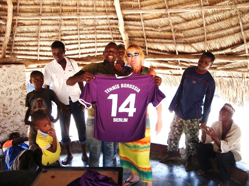 Die Bewohner des kleines Dorfes auf der Insel Unguja in Sansibar staunten nicht schlecht. Plötzlich war sie wieder da, die weiße Frau aus Deutschland. Wie jedes Jahr. Nur diesmal hatte Angelika etwas ganz Besonderes für die Mitglieder des Sportklubs Jambiani im Gepäck: Einen kompletten Satz TeBe-Trikots!