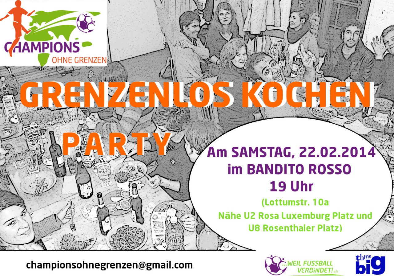 Die Abteilung Tennis Borussia Aktive Fans und das Flüchtlingsprojekt Champions ohne Grenzen laden am Samstag, den 22.02.2014, ab 19 Uhr zum gemeinsamen Soli-Kochen mit anschließender Party ins Bandito Rosso ein.