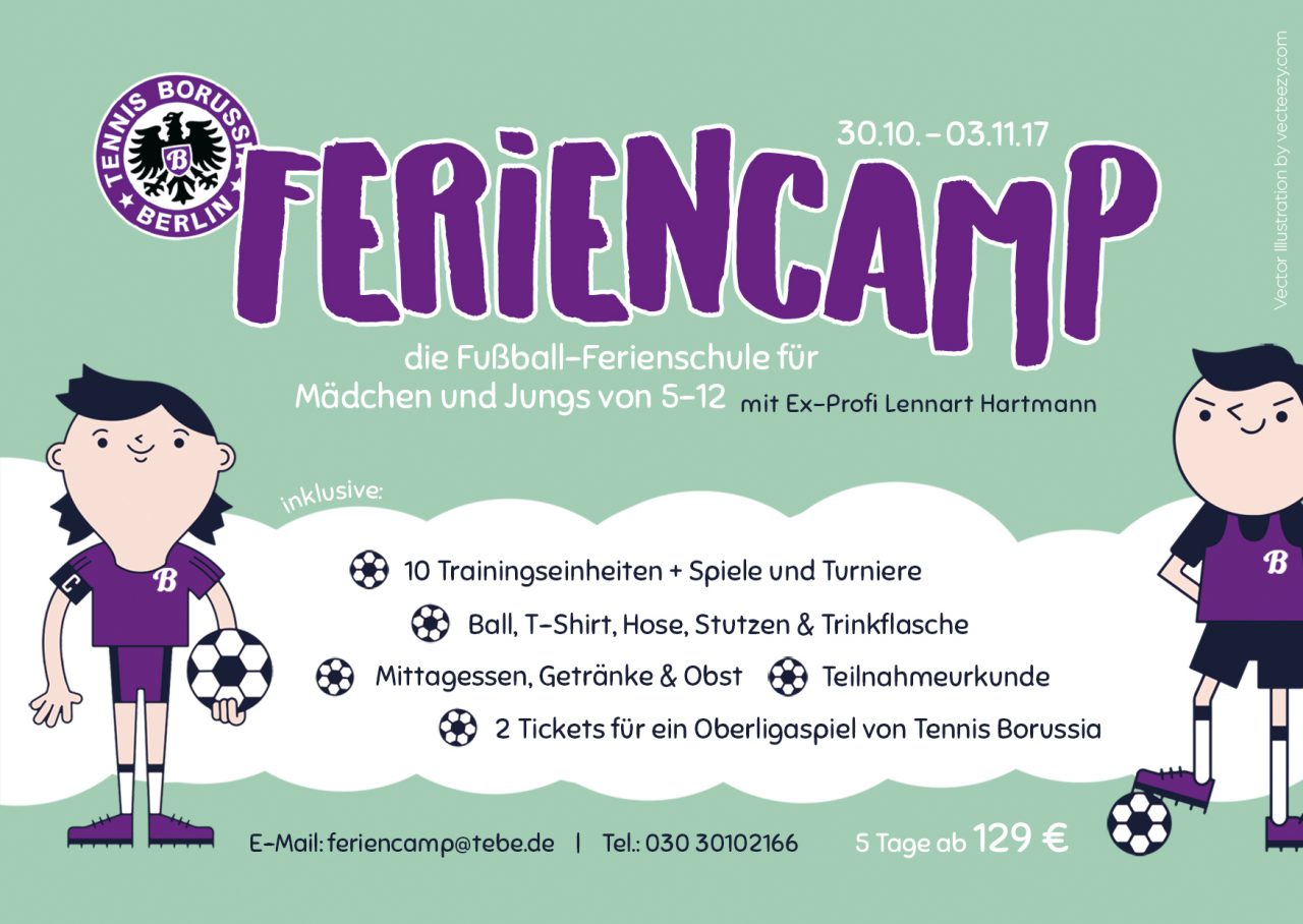 Tennis Borussia Berlin veranstaltet mit dem Projekt „Starke Mädchen durch Fußball“ in den Herbstferien das erste Fußballcamp für Mädchen. Vom 30. Oktober bis 3. November 2017 wird täglich von 10:00 bis 16:00 Uhr am Kühler Weg gekickt und gespielt.