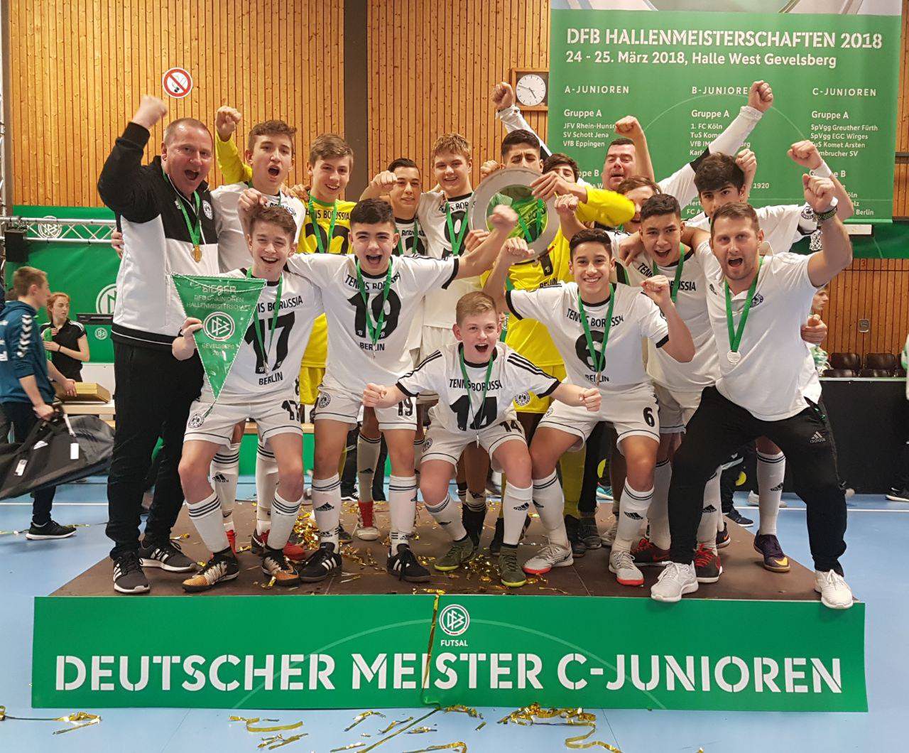 Die C-Junioren um Trainer Andreas Beese, Oliver Galetzki, Daniel Gramzow und Heiko Ladinig sind heute Deutscher Hallenmeister geworden.