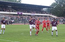 Vor der beeindruckenden Kulisse von mehr als 6000 Zuschauern ließen die Lila-Weißen gestern Abend den schwachen Saisonstart von der ersten Minute an vergessen und lieferten sich mit dem Oberliga-Favoriten aus Köpenick einen offenen Schlagabtausch, der am Ende mit einem Punktgewinn belohnt wurde.