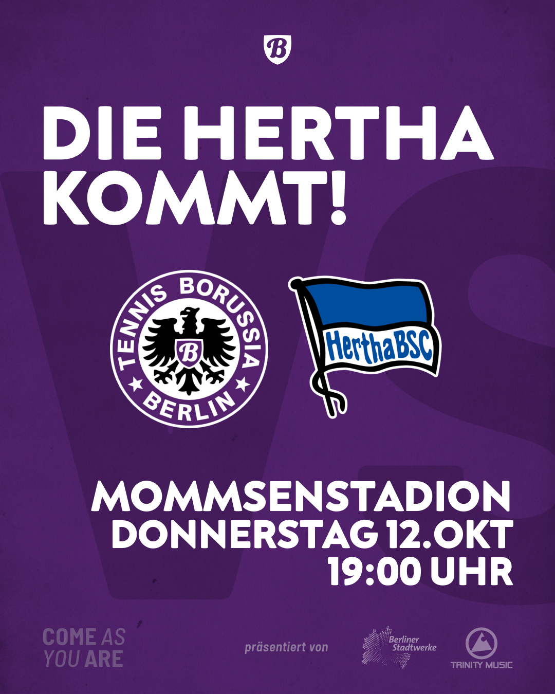 Für den 12. Oktober (Anpfiff 19 Uhr) hat sich TeBe einen ganz besonderen Gegner ins Mommsenstadion eingeladen: Hertha BSC.