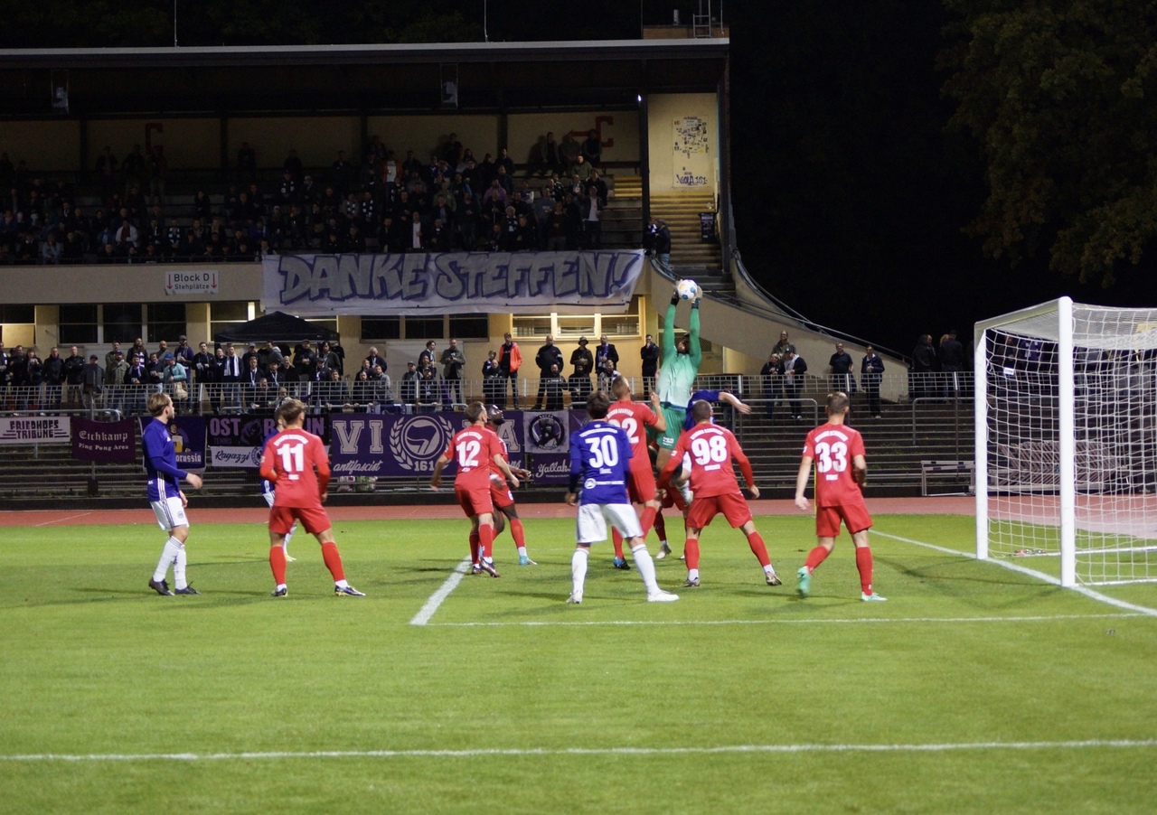 Auch die zweite Halbzeit war geprägt von einem hohen Ballbesitzanteil der Lila-Weißen, aber eben auch schnell und gut herausgespielten Kontergelegenheiten für Schwerin, die bei etwas mehr Abgeklärtheit durchaus die erneute Führung für die Gäste hätten bedeuten können. TeBe wiederum sah sich nun einer kompakter stehenden Abwehr gegenüber, die viel Geduld abverlangte, um Chancen zu erarbeiten. Uns so brauchte es eine Standardsituation in der Nachspielzeit, um diese Geduld zu belohnen: Milos Cvjetinovic köpfte einen von links in den Strafraum gebrachten Freistoß mit Wucht zum viel bejubelten 2:1 in die Maschen und sicherte TeBe einen aufgrund der Spielanteile letztlich verdienten Heimsieg am Freitagabend.